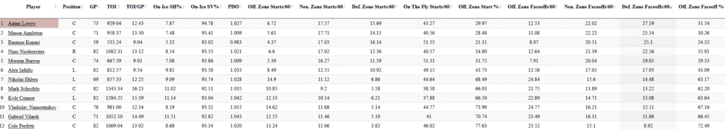Now for those who are familiar with hockey, we all know that Centers are critical for both offense and defense. Wingers are much more replaceable and are usually the offensive experts. This means that the chart above is heavily biased in favor of centers, as we mainly see centers as the kings of these stats in the top right with wingers like Ovechkin performing worse. This is to be expected. While I’m not defending Ovi’s two-way game, this chart definitely makes him look worse than he is. Essentially, we can’t really judge wingers by their defensive abilities unless they are comically good or bad because out of all the forwards, it’s normally the center’s job to shore up the defense. This means wingers like Kucherov and Ovechkin kind of get a pass for not being the best defenders. For McDavid, he does not get this pass. As a center, he needs to be good at defense.